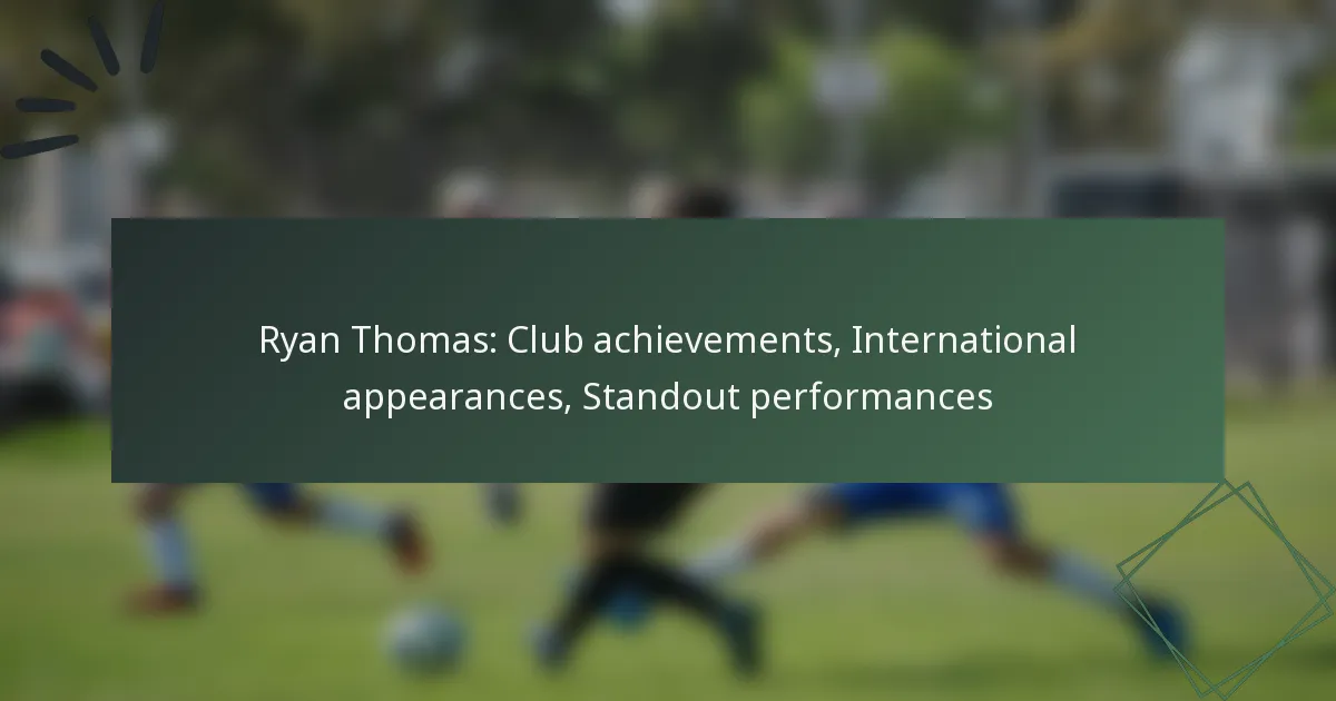 Ryan Thomas: Club achievements, International appearances, Standout performances