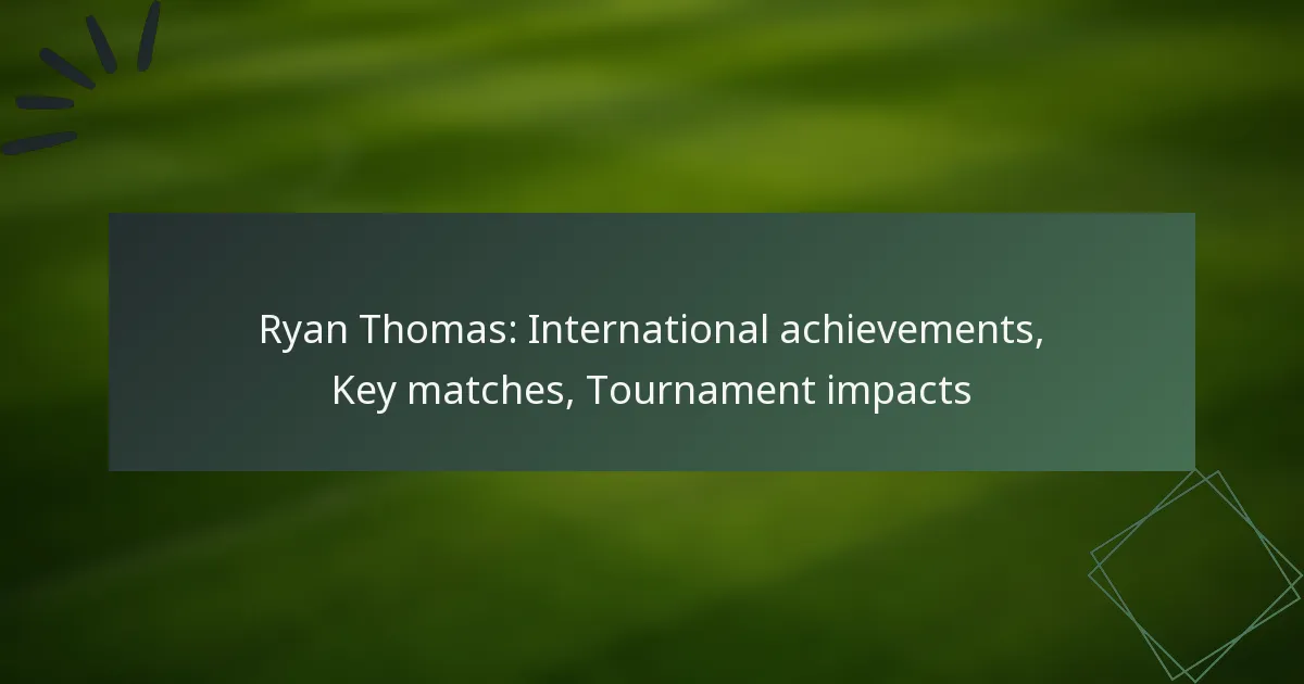 Ryan Thomas significantly influenced international tournaments through his exceptional skills and strategic play. His contributions not only elevated team performance but also left a lasting mark on the outcomes of key matches.